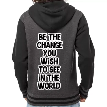 Be the Change You Wish to See Varsity Hoodie – Inspirational Zip Hoodie – Cool Design Hooded Sweatshirt