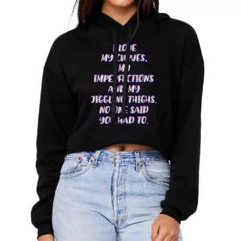 I Love My Curves Women’s Cropped Hoodie – Feminist Cropped Hoodie – Trendy Hooded Sweatshirt