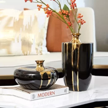 Elegant Black Gold Ceramic Vase