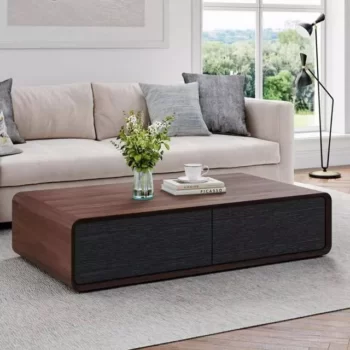 Walnut and Oak Wood Coffee Table with Hidden Storage and Modern Design