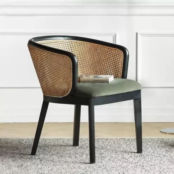 Modern Nordic Rattan Lounge Chair – Elegant Velvet Outdoor/Indoor Sofa Chair
