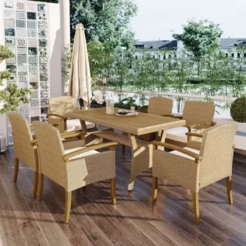 7-Piece Rattan & Wood Outdoor Dining Set